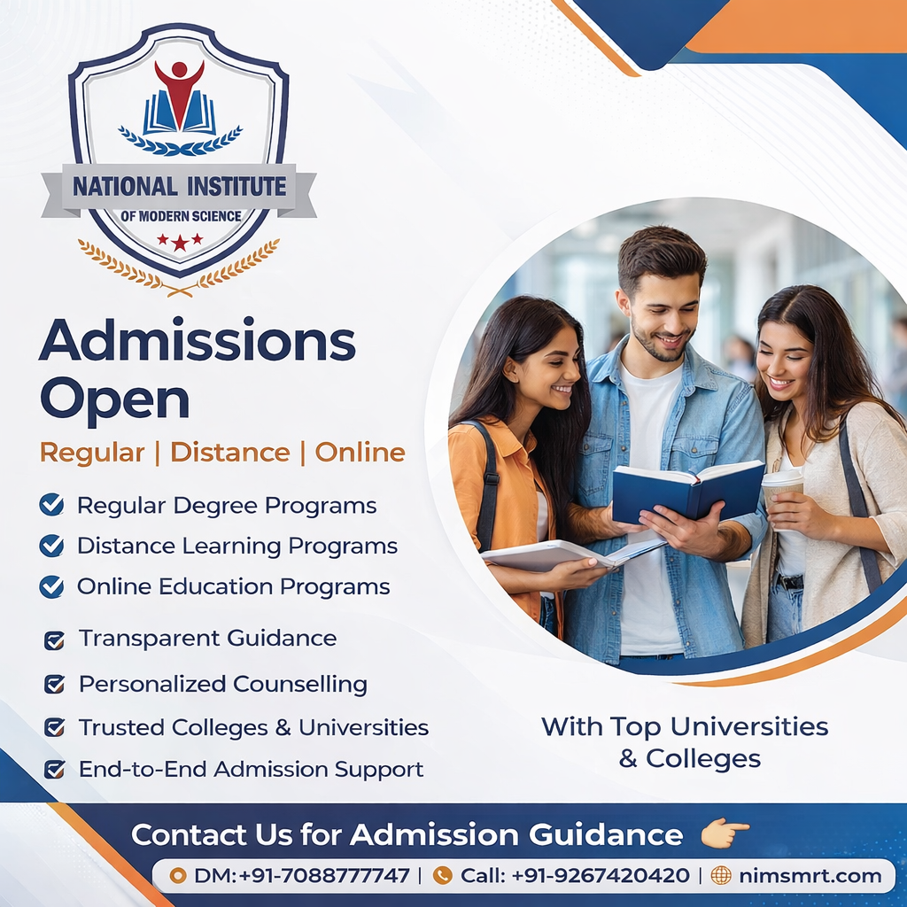 NIMS Institute of Education offers flexible, affordable, and career-focused UG, PG, Computer, and Skill-Based programs designed to meet today’s job market needs. With an emphasis on practical learning and industry-relevant skills, we support students and professionals through UGC-DEB-approved Online, Distance, and Regular courses.